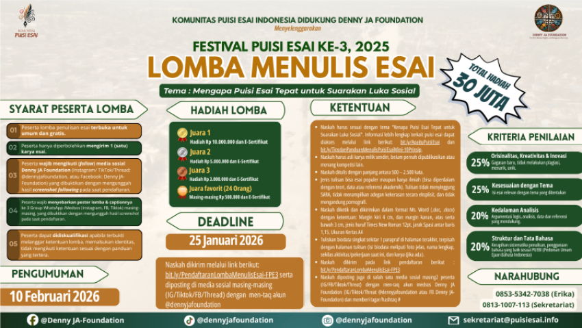 FESTIVAL PUISI ESAI KE-3, 2025: LOMBA MENULIS ESAI